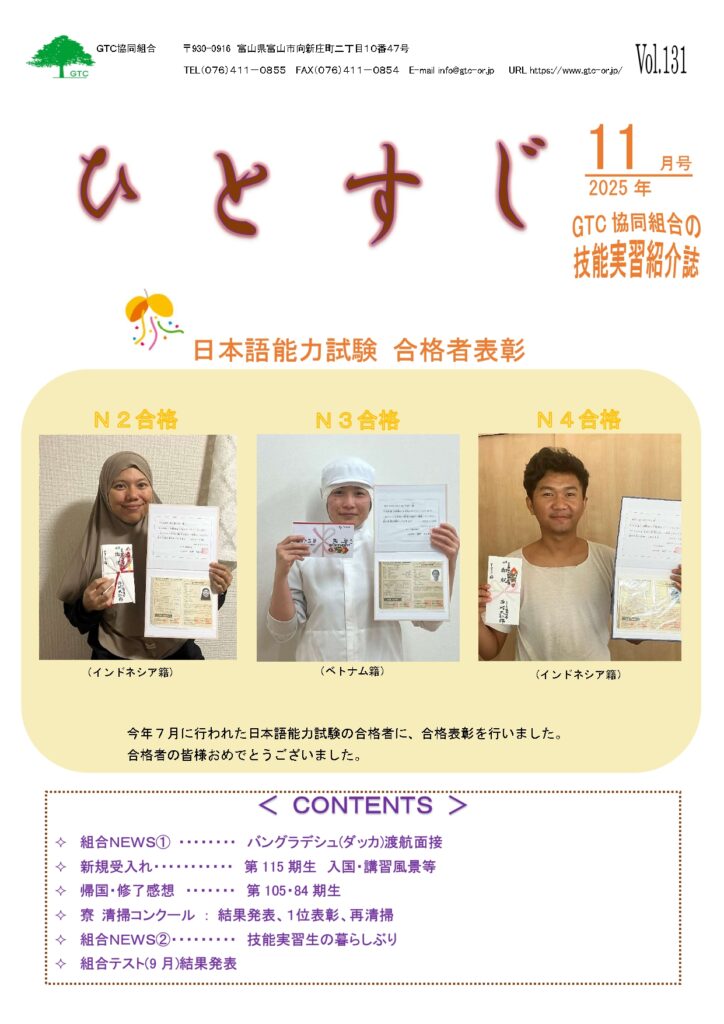 技能実習紹介誌「ひとすじ」Vol.131発刊