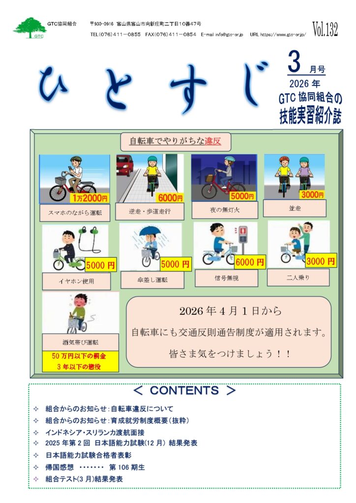 当組合で発刊している技能実習紹介誌「ひとすじ」Vol.132が完成いたしました。